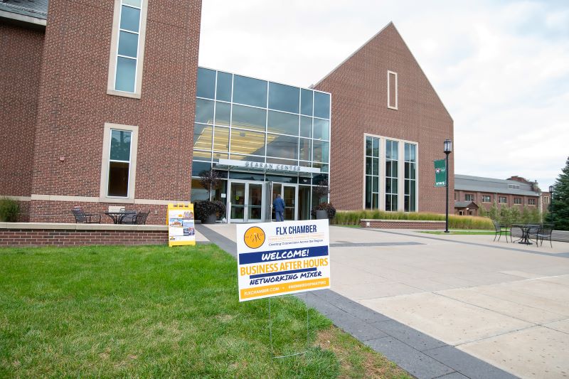 Located at 299 Pulteney Street in Geneva, The Gearan Center for the Performing Arts was completed in 2016. The 65,000-square-foot facility brings together music, dance, theatre, media, and society in a unified academic space for the first time in HWS history. During the event, Katie Flowers spoke about her role with the Colleges and what Community Engagement and Service Learning programs offer, before introducing and featuring the various department heads that were present with tables set up around the room to meet with guests that attended the event. Special thanks were made to the team at Conference Services and Sodexo who did an outstanding job of catering the event. Stephanie Yearsley, Director of Conference Services spoke about the various services offered, such as catering special events of all sizes including outside rentals and banquets. Miranda Odell, Chamber President spoke about the importance of the long-standing relationship with HWS while thanking Flowers for the colleges’ hospitality and generosity. After the event, students offered campus tours to attendees.
