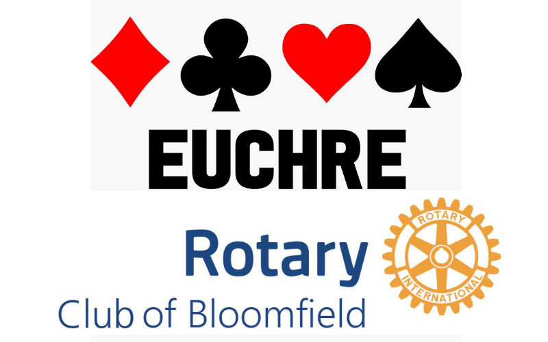Euchre Tournament sponsored by Bloomfield Rotary, at Cheap Charlie’s in Bloomfield.