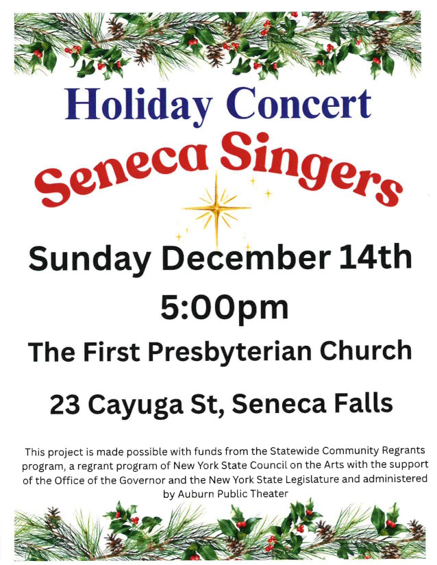 Sunday Dec 14th @ 5 pm, First Presbyterian Church at 23 Cayuga St Seneca Falls