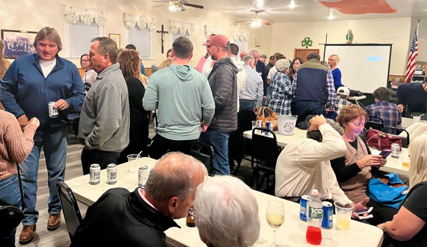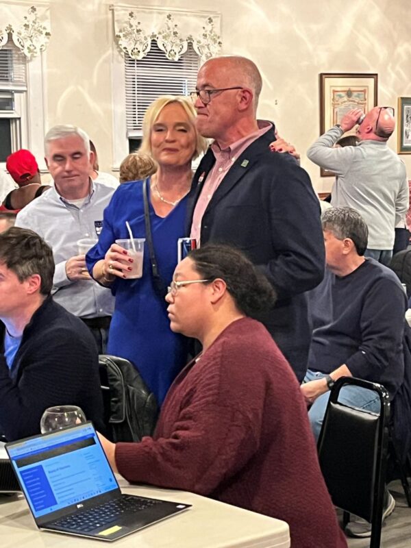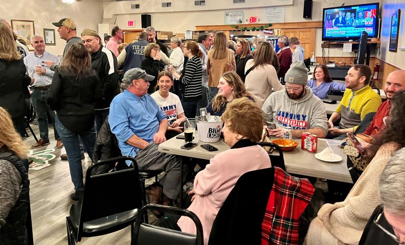 Our Ed Helinski, who is covering Election Night for us in Cayuga County with the Democrats, reported at 9:30 p.m. “Packed house here at Auburn Ancient Order of Hibernians as they wait for election results.”