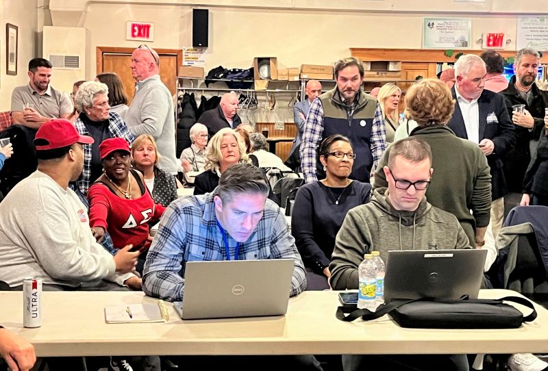 Supporters gather in Cayuga County Conservative Party headquarters to await results (photo: Ed Vivenzio, Finger Lakes Daily News)
