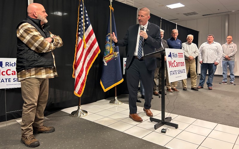 During the event, McCarron criticized one-party Democratic control in Albany, blaming state policies for rising energy costs, housing challenges, and criminal justice reforms he says have made communities less safe.