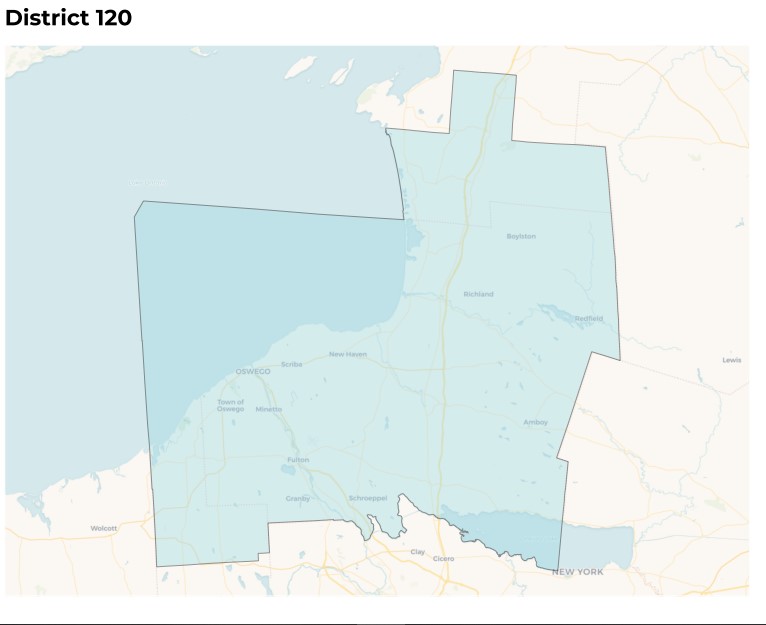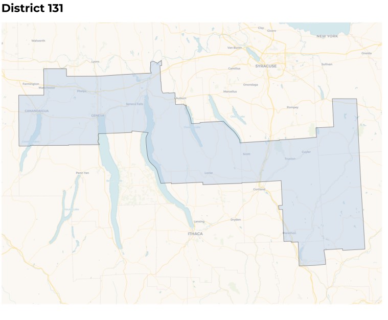 The 120th district which contains Sterling and Victory and the126th district which houses Auburn, Owasco, and Port Byron would remain the same. The 131st district, containing Locke and Union Springs and stretching from Canandaigua down to Madison county would pick up more more land in Madison and Chenango Counties.