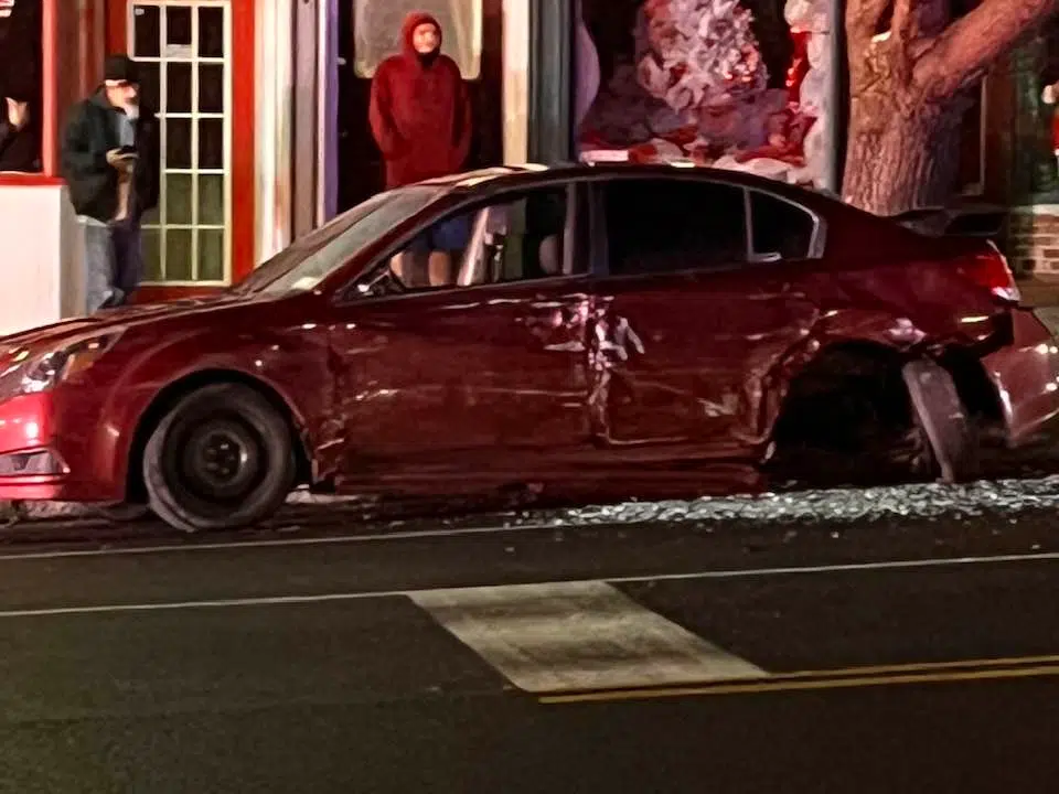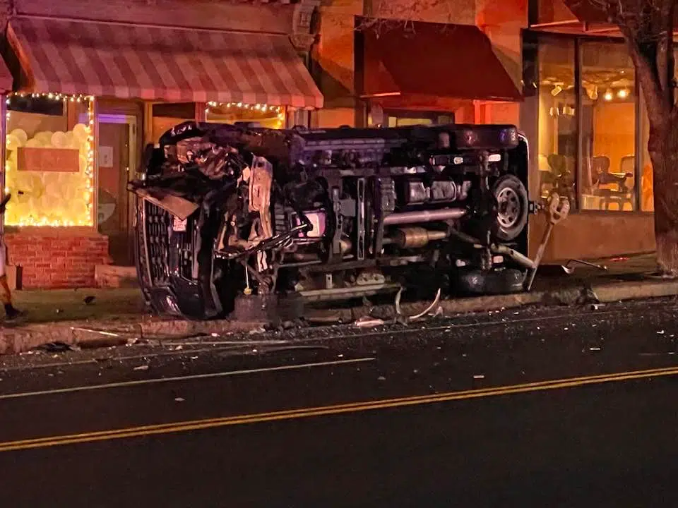 The Citizen reports the driver of a BMW sped away following an incident at a South Street bar Saturday night, drove down Genesee Street at a high rate of speed, and lost control of his vehicle while rounding a curve on East Genesee, in him crashing into parked cars. One of the vehicles that were struck, a Chevy Silverado, was flipped onto the sidewalk, and another vehicle, a Subaru Legacy received rear tire and significant driver’s side damage and the BMW was found abandoned in the street.