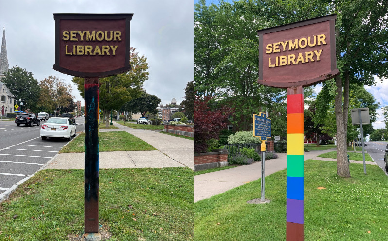 In a Wednesday Facebook post, the library announced that its rainbow signpost had been damaged. Earlier this year, the library’s StoryWalk panels at Hoopes Park were damaged by vandals.