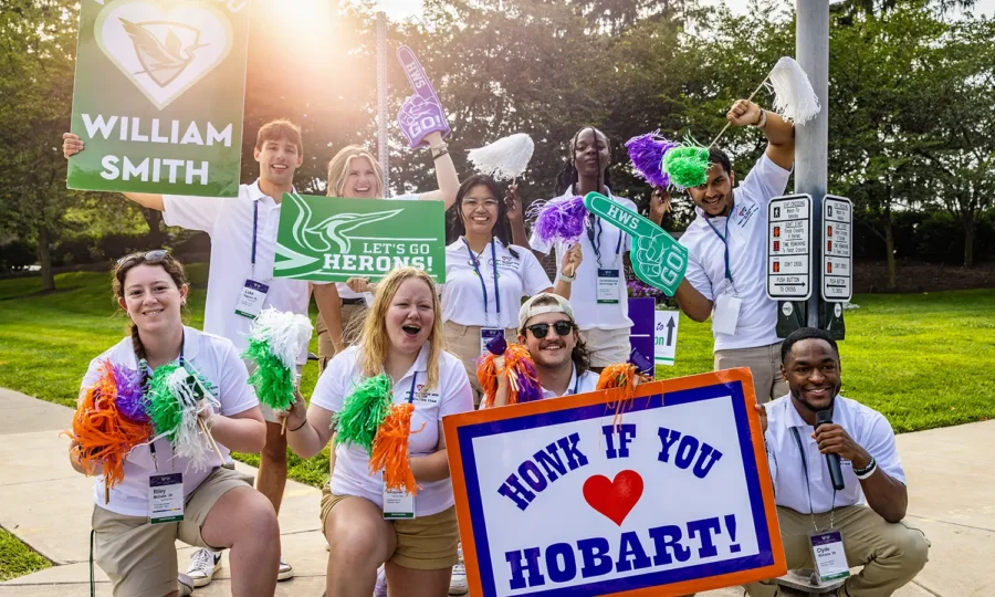 Orientation comprises a full week of programming designed to create meaningful opportunities for students to get to know one another, campus, and their new Finger Lakes home. This summer, Orientation Coordinators Joey Tello Galicia ’25 and Jill VanLare ’26 and the HWS Office of Campus Life have assembled and trained a team of student Orientation Leaders and Mentors who will welcome new students and their families to Hobart and William Smith.