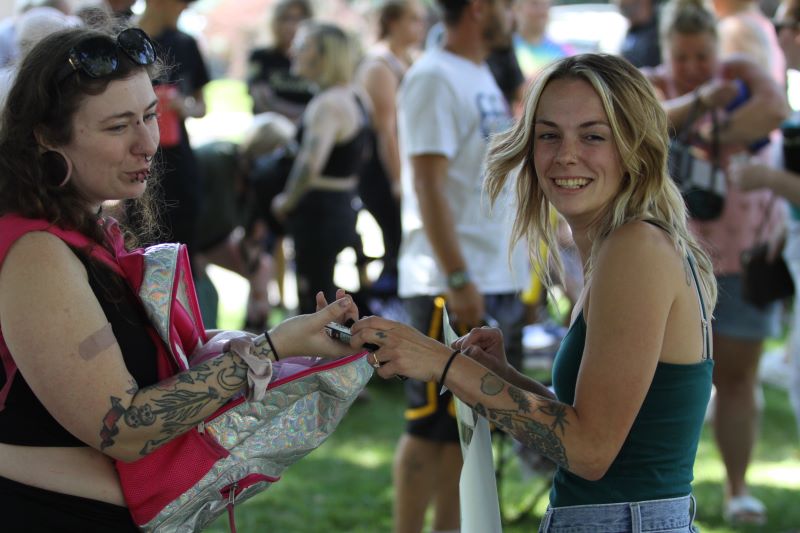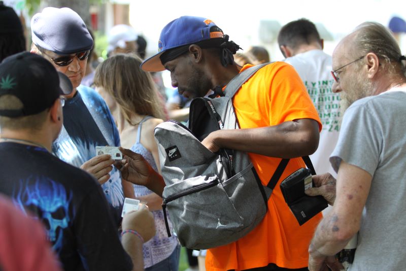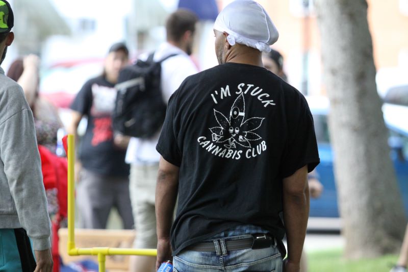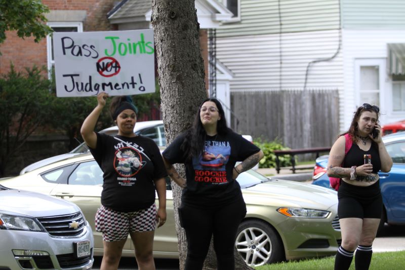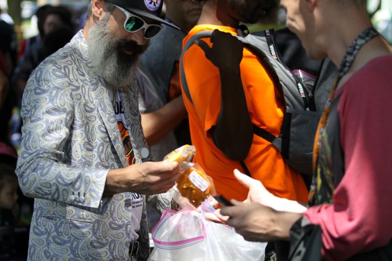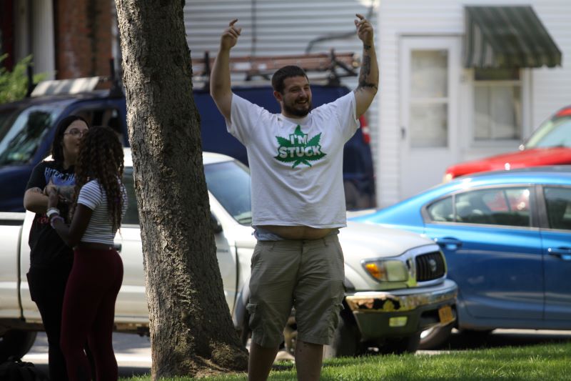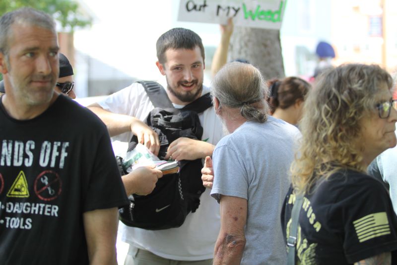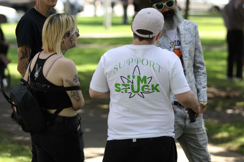 “I’m Stuck” owner David Tulley was scheduled to appear in the Wayne County court on Wednesday, but instead he and his employees showed up in the park across the street from the courthouse in Lyons and handed out free marijuana edibles.