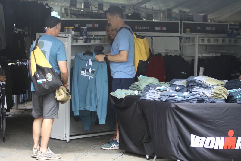 The IRONMAN Village set up on the Geneva lakefront offers everything from running shoes, shirts, water bottles, sunglasses, and more for sale before this weekend’s Musselman race.