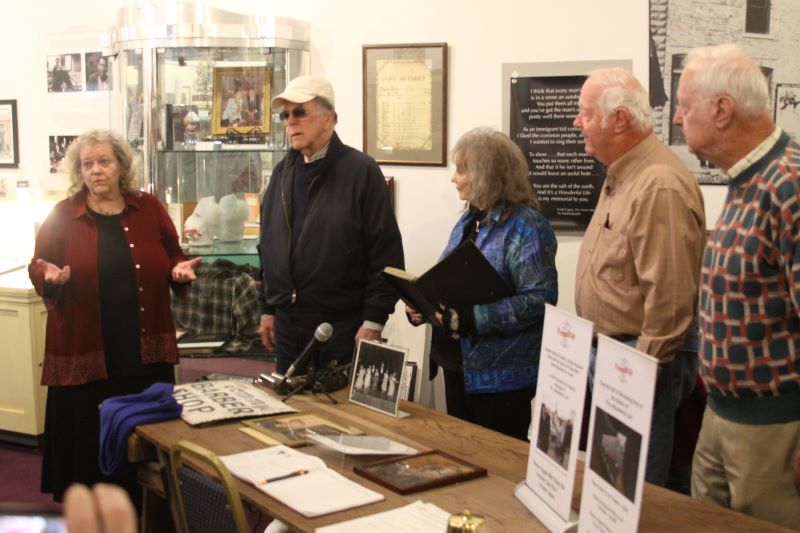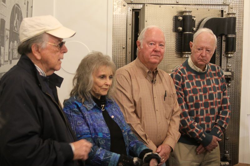 Jimmy Hawkins, Karolyn Grimes, Ron and Don Collins in the old Seneca Falls Bank Building and the former National Women’s Hall of Fame to talk about their childhood memories on the set of It’s a Wonderful Life.”
