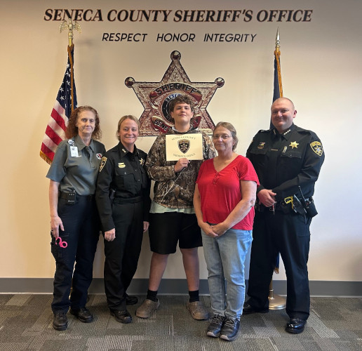 For his actions, Sheriff Tim Thompson presented Ethan with a Civilian Life Saving Award and a personal letter at the Law Enforcement Center last Wednesday.  Ethan also received a tour of the center and a close-up look inside a sheriff’s patrol vehicle.