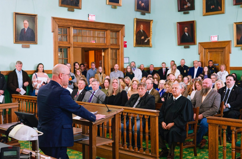 Surrounded by family, friends, colleagues, and community supporters, MacBride took the oath of office and delivered remarks emphasizing service, integrity, and the responsibility inherent in the role. Former Ontario County District Attorney R. Michael Tantillo also spoke, reflecting on the importance of the office and its mission. Sheriff David Cirencione also spoke at the ceremony.