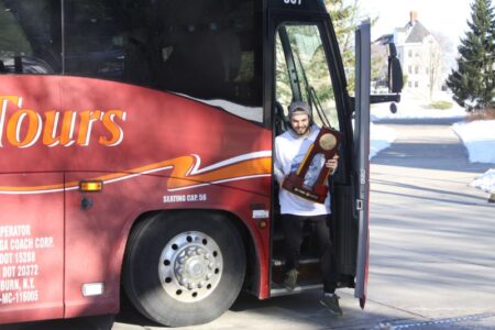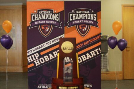 The Hobart Statesmen Hockey team returned to campus Sunday evening, receiving a warm welcome from members of the HWS and Geneva communities.