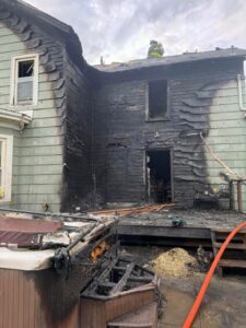 A passerby was able to alert the homeowners who were inside with their dog about the fire, allowing them to escape without injury.