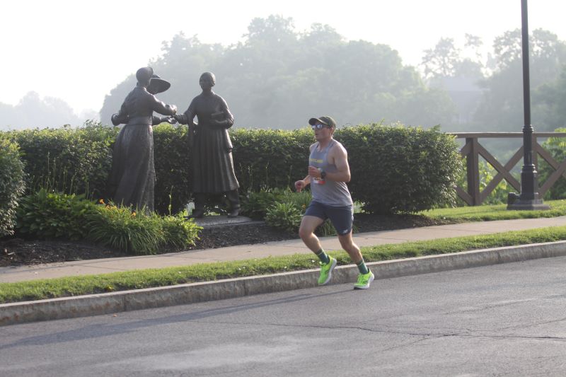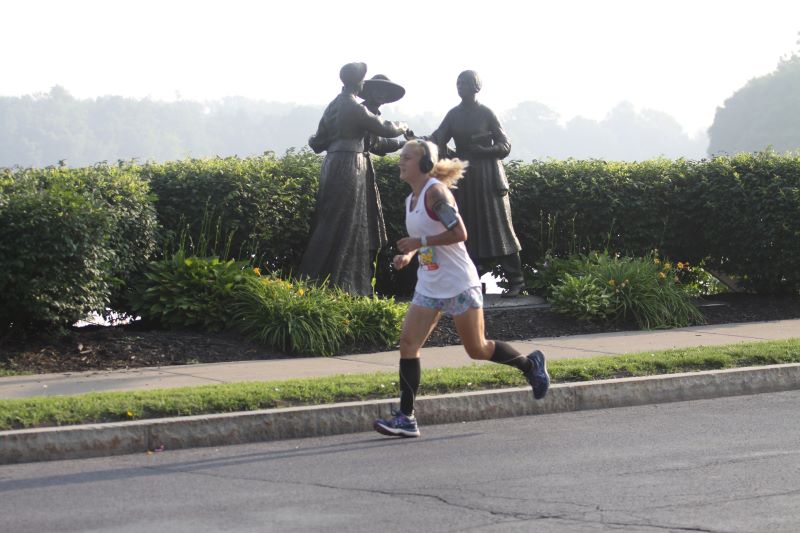 Runners gather at the birthplace of the Women’s Rights Convention to celebrate the passing of the 19th amendment.