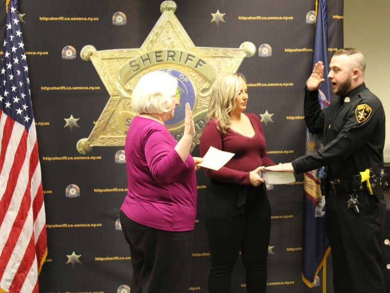 Glen Addicott and Jordan Morgan were recently sworn in by Seneca County Clerk Tina Lota at a ceremony held at the Law Enforcement Center in Romulus.