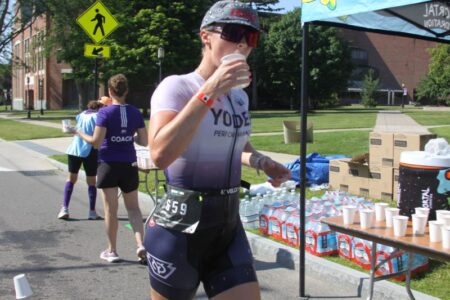 The day began with 1.2-mile swim, a 56-mile bike ride, and finished with a 13.1-mile run.