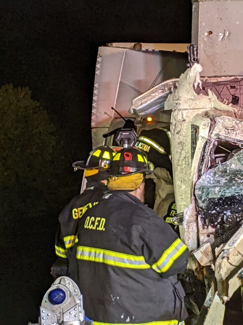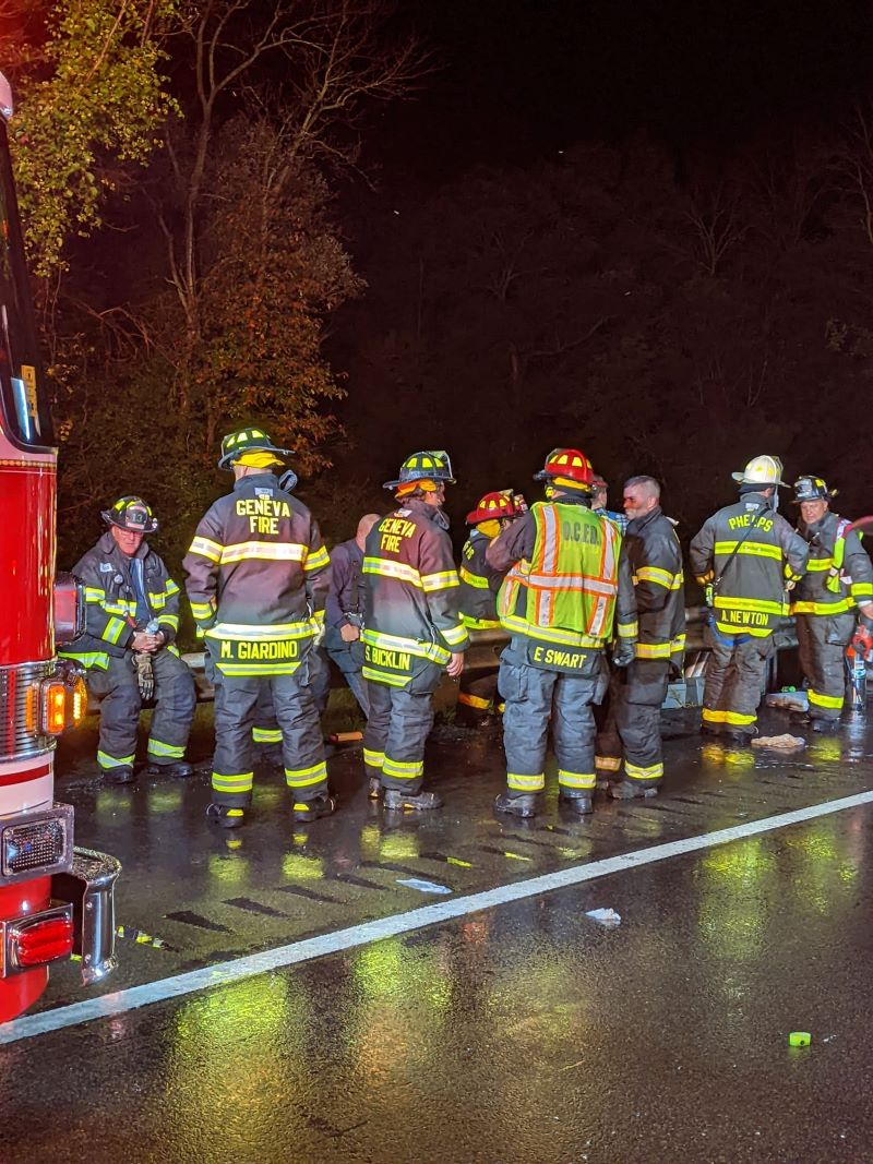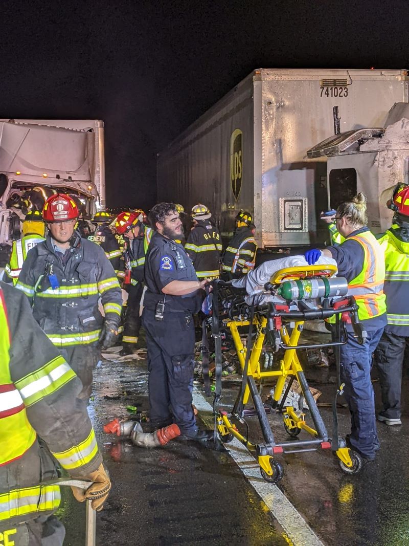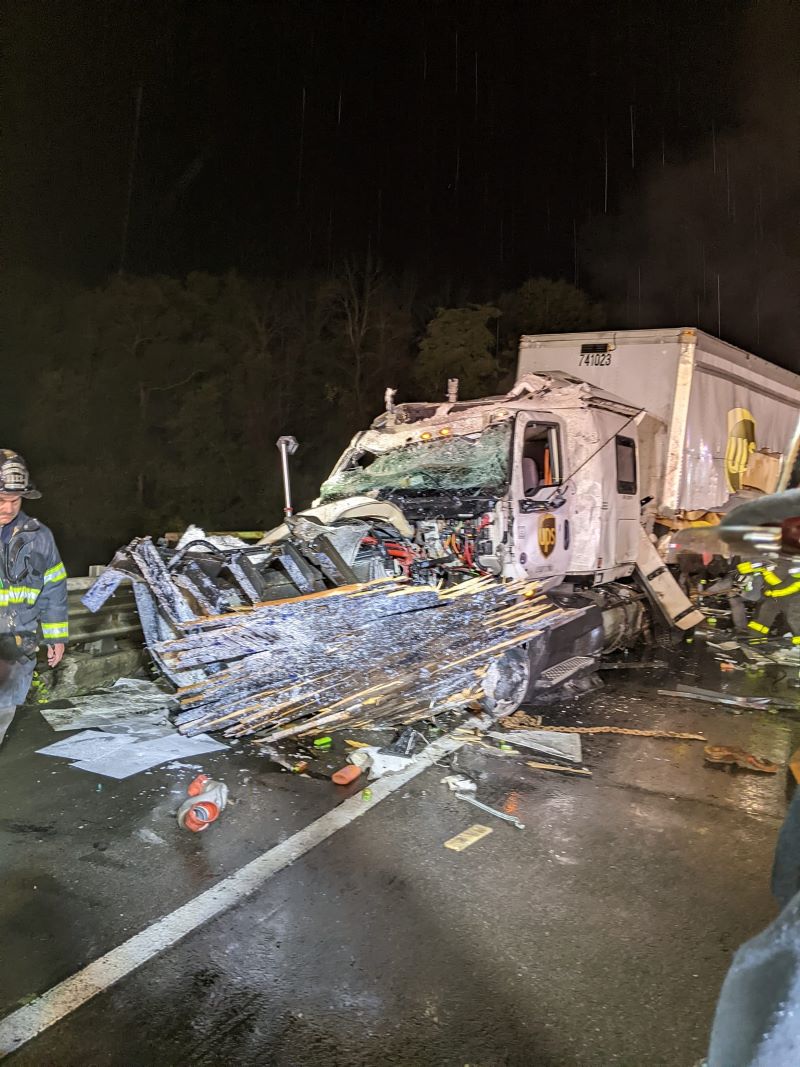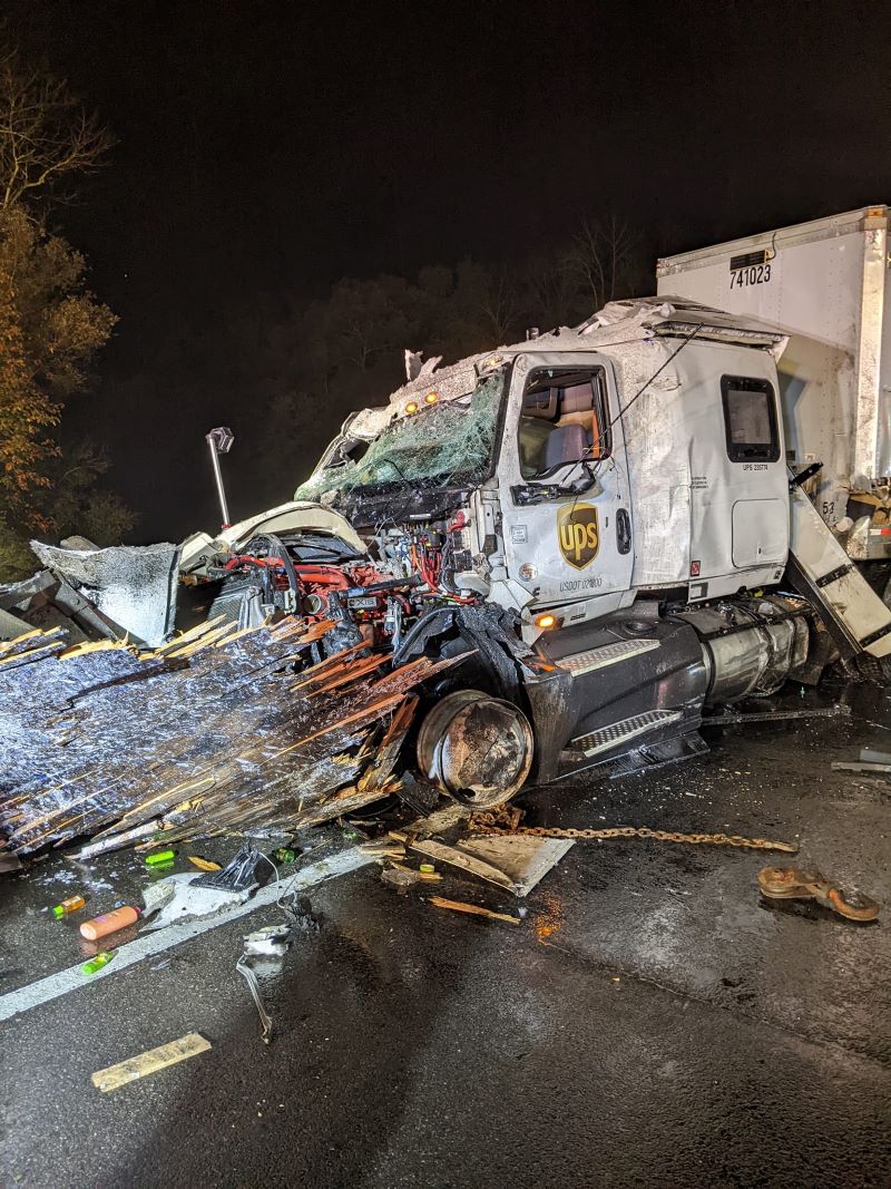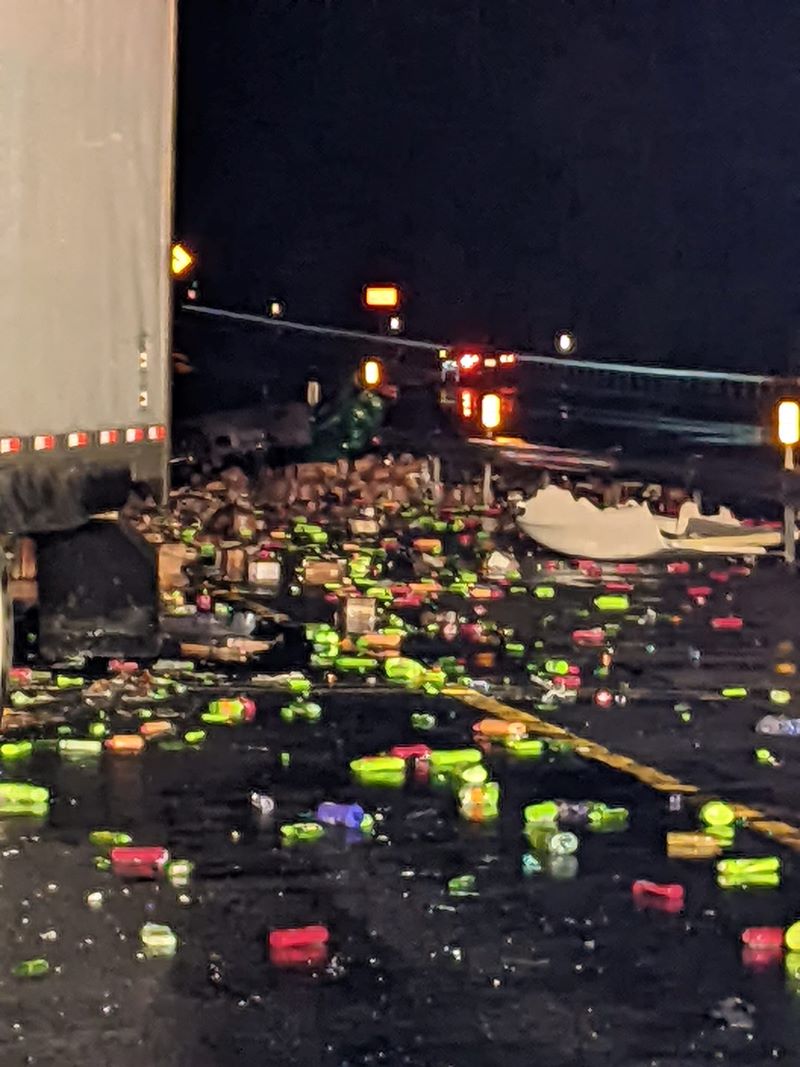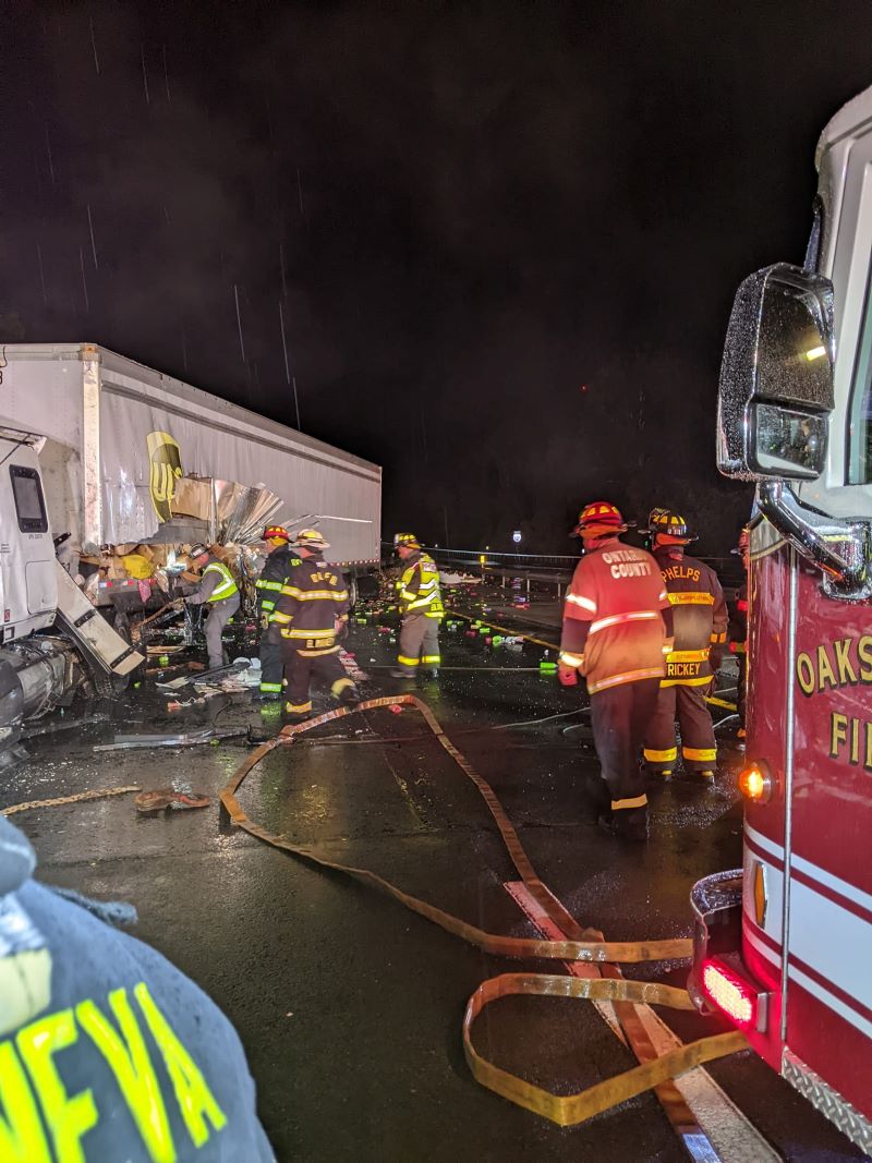 At around 4:35 Thursday morning, a 2004 tractor-trailer, operated by 52-year-old Gurvir Singh, of Ohio, was traveling east hauling shampoo bottles when it struck the guardrail leaving the tractor-trailer sideways in the roadway. A 2024 tractor-trailer, operated by 38-year-old Richard Puryear, of Texas, and his passenger, was traveling eastbound when it struck the 2004 tractor-trailer, causing it to overturn and spill the shampoo out of the trailer. A 2016 Volvo tractor-trailer, operated by 70-year-old Donnie Miller, of Rochester, struck the 2024 tractor-trailer. Singh, Puryear, and Miller were all transported to Strong Memorial Hospital for minor injuries.
