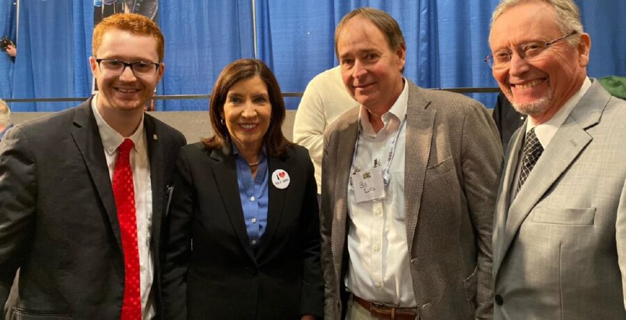 Waterloo, NY, 3/4/2024 Waterloo Container –Bill Lutz, President of The Waterloo Container Company was able to spend some time with NYS Governor Kathy Hochul, and Commissioner of Agriculture and Markets Richard Ball while attending the Taste NY Reception in Albany Monday night.