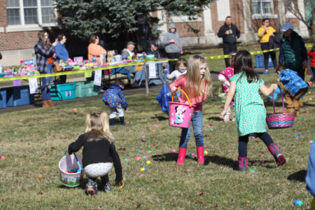 The Waterloo Rotary Club hosted it’s annual Easter Egg Hunt in Lafayette Park Saturday for hundreds of kids. The park was divided by age groups, and prizes were handed out for those lucky enough to find eggs with tickets inside. Others were just happy to eat the candy they found in the eggs.