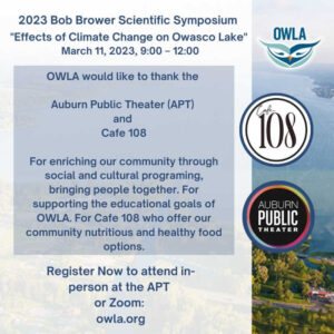 The Owasco Lake Watershed Association (OWLA) is holding its 2023 Bob Brower Scientific Symposium at 9:00a this Saturday at Auburn Public Theater.