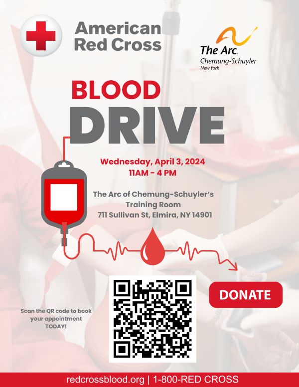 You’ll have another chance to donate the gift of life when the Arc of Chemung-Schuyler hosts a blood drive in conjunction with the American Red Cross.