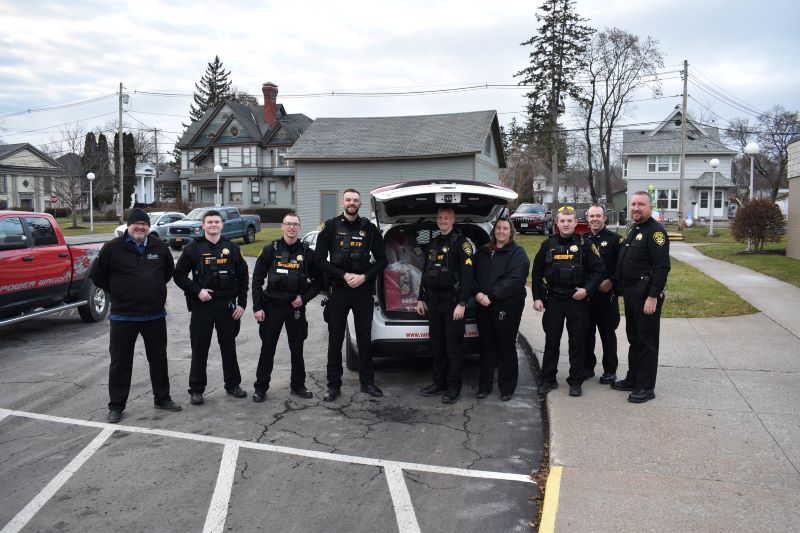 Road patrol deputies and investigators handed out Christmas presents at 23 houses this week thanks to the generous donations of Yates County residents and the business community. Volunteers also assisted in the collection of gifts that were left at businesses around the county, as well as with wrapping.