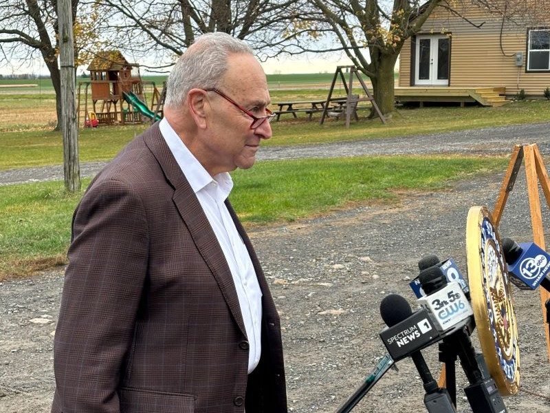Standing at the Henderson Family Farm in Penn Yan on Monday, U.S. Senate Majority Leader Charles Schumer launched his two-pronged plan to boost federal funding for farmers and communities to combat harmful algal blooms (HABs) in the Finger Lakes region.