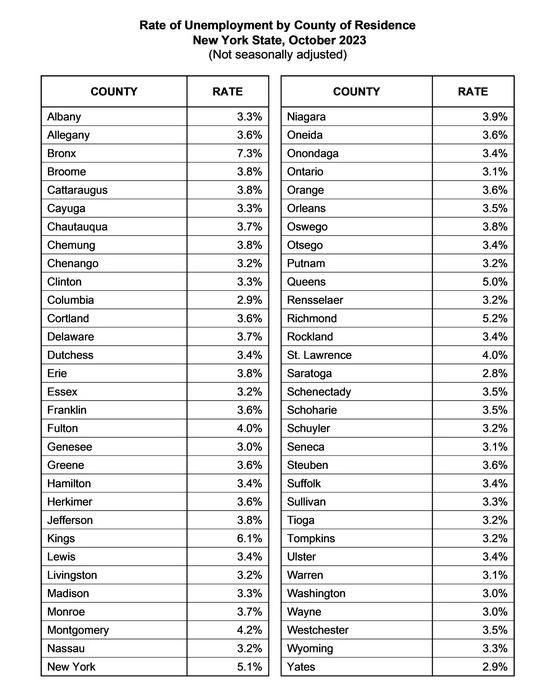 New York State’s seasonally adjusted unemployment rate increased from 4.0% in September to 4.2% in October 2023.
