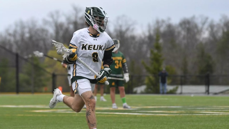 Aiden Nice (Palmyra, N.Y./Palmyra-Macedon) led Keuka College (3-2) with three goals, including the game-winner with 1:17 remaining. Harrison Root (Jefferson, N.J./Jefferson Township) added a hat trick for the Wolves, while Austin Holsclaw (Queensbury, N.Y./Queensbury) finished with two goals and an assist. Nikolas Gitsis (North Chili, N.Y./Churchville-Chili) recorded a goal and an assist, and Toby Tummino (LaFayette, N.Y./LaFayette) added a goal. Jaxson Tucker (Canandaigua, N.Y./Canandaigua Academy) made 14 saves in net.