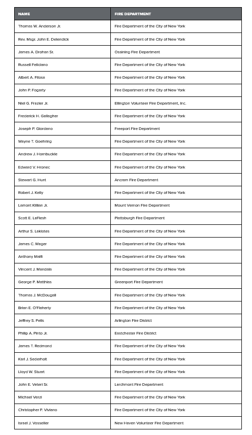 “Our firefighters embody the definition of what it means to selflessly serve one’s community, and today, we remember those we lost fulfilling that service,” Lieutenant Governor Antonio Delgado said. “These men and women are heroes who rose to meet challenges that most of us can scarcely imagine, and we owe them a debt of gratitude we will never be able to repay to those they have left behind. Today, we mourn alongside their families, friends, and colleagues as we salute their courage.”