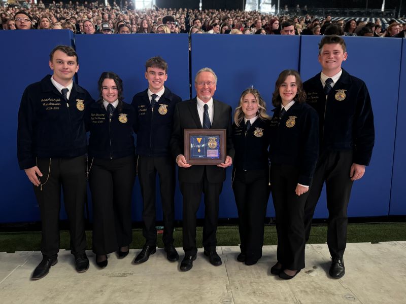 The New York State Department of Agriculture and Markets Commissioner Richard Ball was awarded the Honorary American FFA Degree on Friday for his outstanding personal commitment and dedication to advancing agricultural education across New York State. The prestigious accolade recognizes those who have gone beyond valuable daily contributions to make an extraordinary long-term difference in the lives of students, inspiring confidence in a new generation of agriculturists. He was honored during the 97th National FFA Convention and Expo in Indianapolis, which brings together more than 70,000 FFA student members, program staff, and industry partners from across the nation to recognize their achievements and to provide members with valuable personal and professional development opportunities.