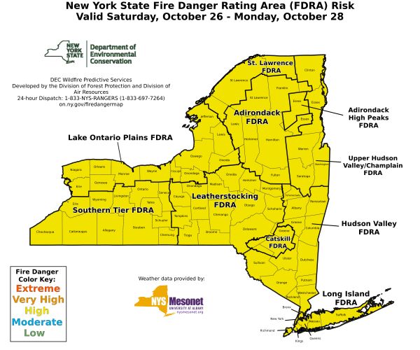 According to the State DEC, this is due to dry and windy conditions, especially in eastern portions of the state. DEC officials remind residents that small fire can spread easily and turn into uncontrolled wildfires. They advise against burning, but if you do, keep your fire small and make sure it’s contained in a fire pit. All fires must be attended to until out cold.