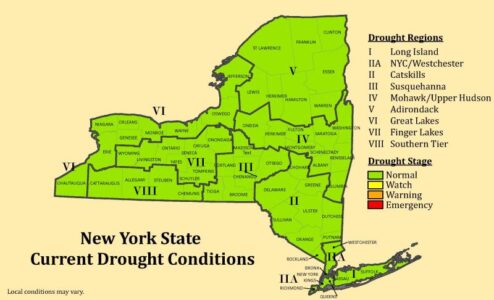 In cooperation with the State’s Drought Management Task Force, DEC updated drought status from “Drought Watch” to “Normal” statewide, including New York City, after assessing recent precipitation and elevated levels of ground and surface water. While statewide and regional hydrological conditions have notably improved, localized dry conditions may persist and despite encouraging hydrological conditions, New Yorkers are urged to continue reducing unnecessary water use and waste, fixing leaks, and choosing efficient water fixtures.