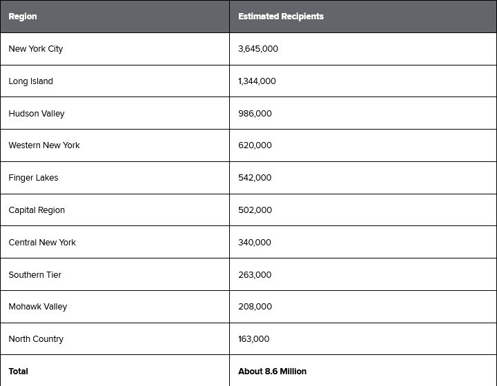 Governor Hochul’s proposed Inflation Refund is a one-time, direct payment. Here is how many people would be recipients of the payment by region: