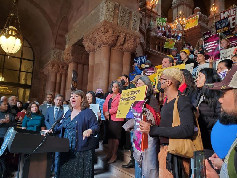 Some lawmakers joined community members, families, immigrant and legal activists, and unions to call for urgent passage of four bills pending in the legislature that would take steps to protect immigrant communities: the New York for All Act, Dignity Not Detention Act, Access to Representation Act, and Clemency Justice Act.