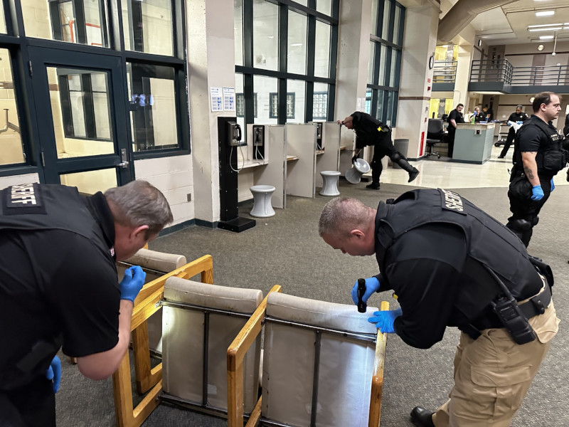 The Sheriff’s Office reported a full shakedown Wednesday of the Syracuse facility by members of the office’s Custody, Correction, and Police divisions along with members of the Academy Class. SERT and SWAT members were also on-site to provide extra security during searches of cells and occupied areas.