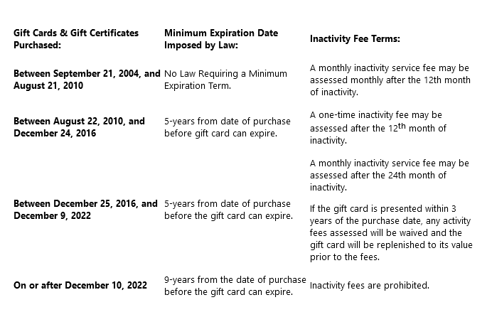 In New York State, a gift card or gift certificate’s purchase date determines what, if any, rights exist for consumers. Based on the purchase date, consumers can expect the following legal protections: