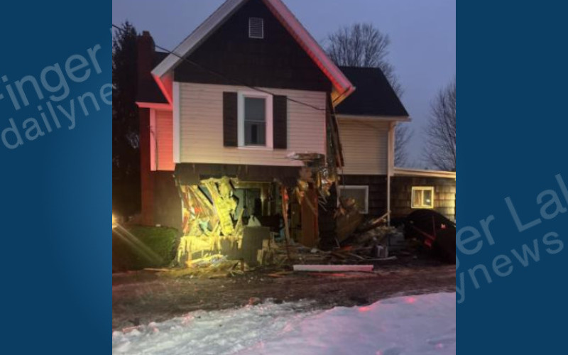 A snowplow truck slid off the road and crashed into a home early Wednesday morning in Mount Upton.