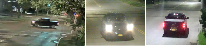 Troopers were out of their patrol vehicle investigating a stolen vehicle complaint at the intersection of Gertrude Ave and Oak Street in the City of Syracuse. The Troopers marked patrol vehicle was parked on Gertrude Ave at the intersection when it was struck/sideswiped by an F150 (newer model w/crew cab) pickup truck that was traveling east on Gertrude Ave. The pickup truck fled the scene, taking a left turn onto Oak Street and eventually out of sight from the troopers.
