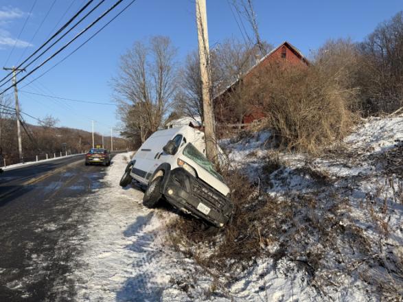 Troopers from the Homer barracks were called to State Route 41 in the town of Homer around 8:15 a.m. for a report of a crash involving one vehicle. Investigators determined that a Ryder rental van was traveling at an unsafe speed when it left the roadway and struck a telephone pole.