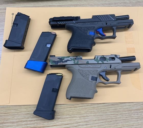 - Nine unserialized and unregistered Polymer80 ghost gun pistols