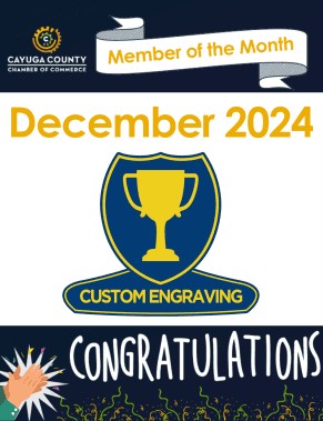 - The December Member of the Month is Custom Engraving. What happens when the business that makes the plaques for Members of the Month wins the award itself? Amy explains.